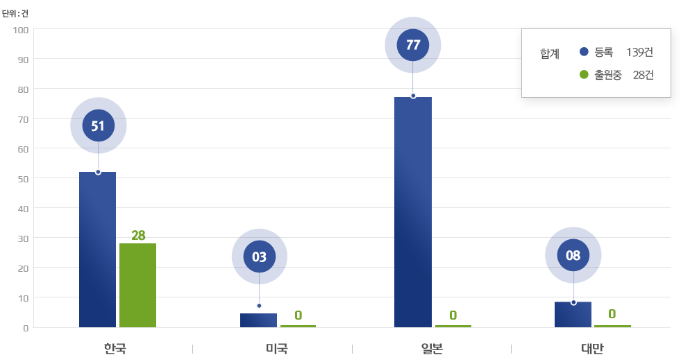 그 결과로 국,내외에 다양한 특허를 보유하고 있습니다.